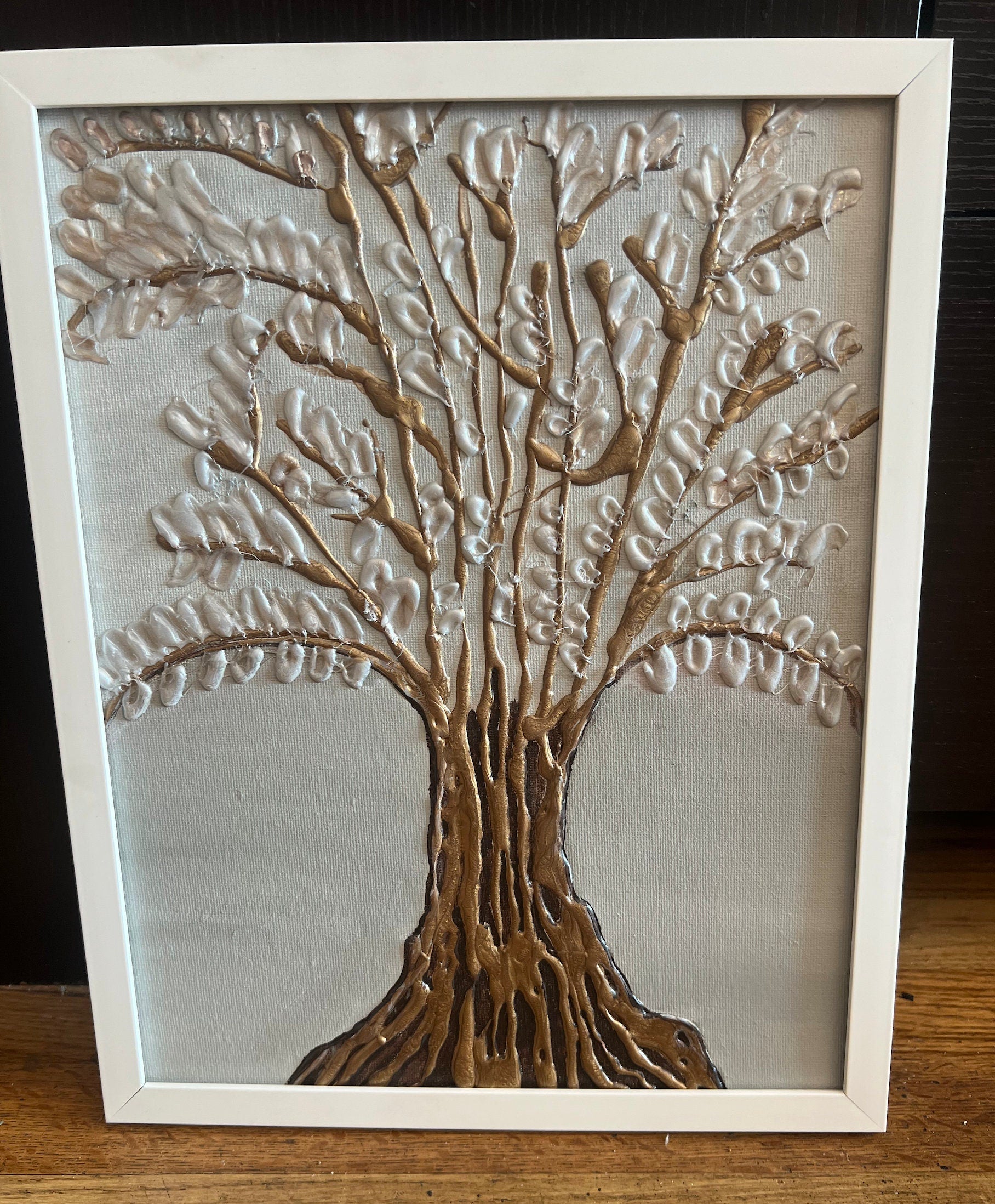 Deeply Rooted 12x15 Textured Silver Gold Glue Acrylic Painting Bold Nature Theme Canvas Framed Wall Art