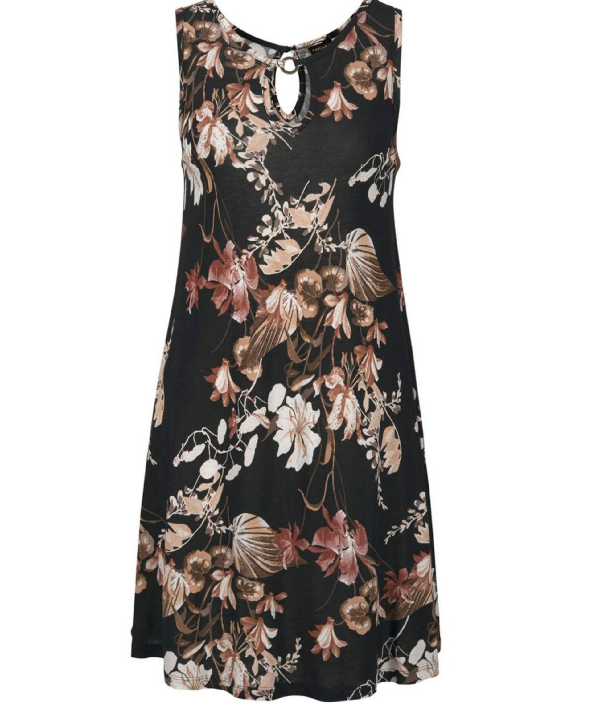 Nothing puts us in a sunny mood quite like this chic floral dress, featuring a keyhole cut out and a flowy tent silhouette that you'll be tempted to twirl around in.