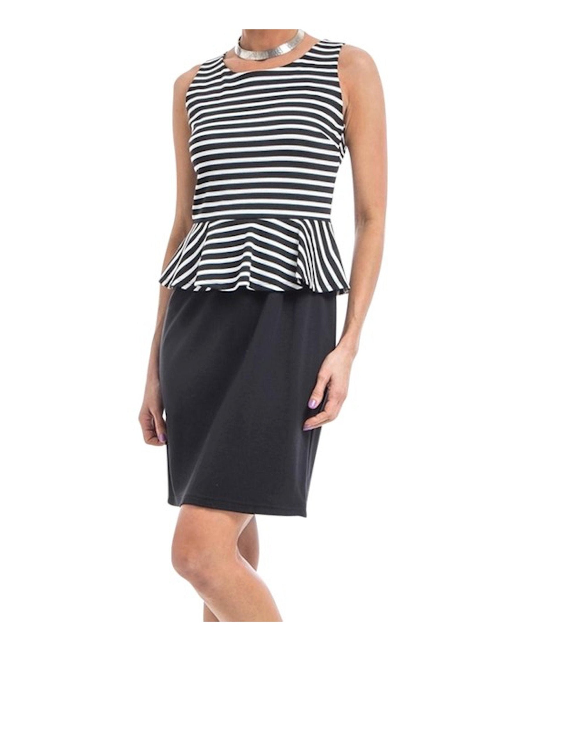 Sleeveless Stripe Contrast Peplum Dress
