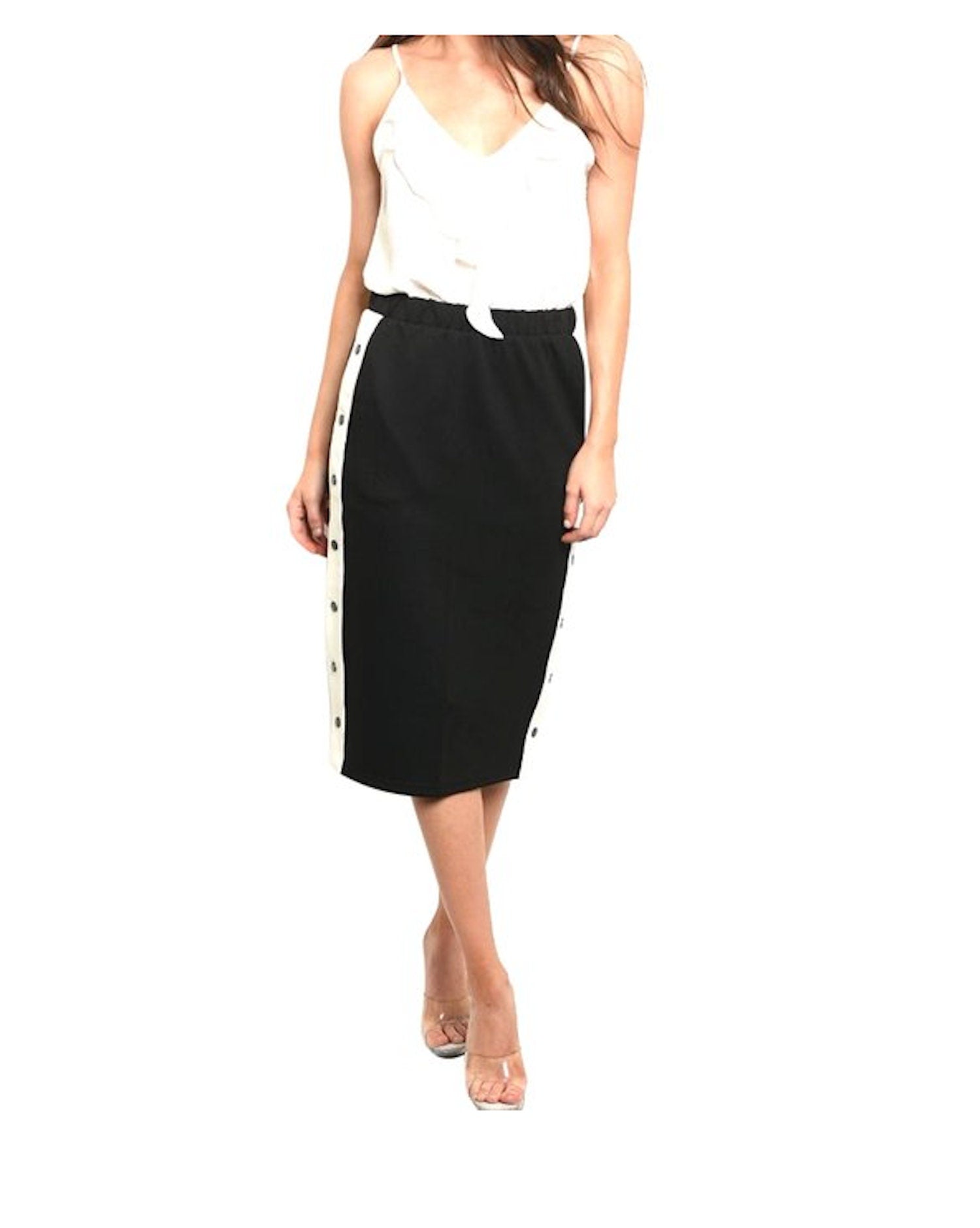 Sporty Chic Snap Side Straight Midi Skirt